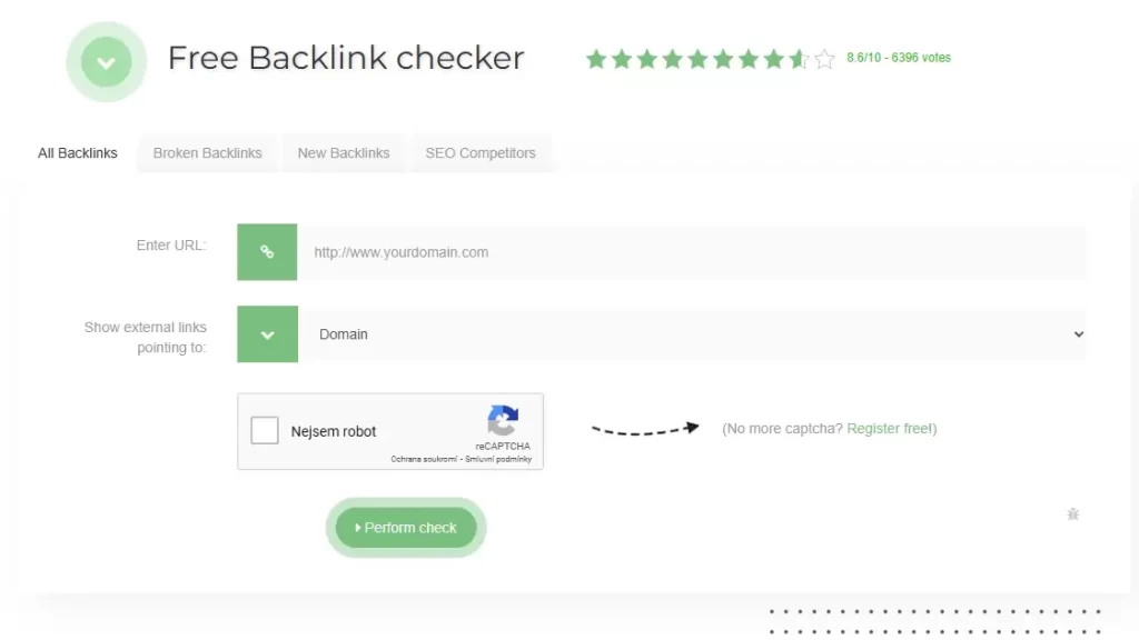 Backlinky vašeho webu si můžete sami zkontrolovat například pomocí bezplatného nástroje „Free Backlink checker„: